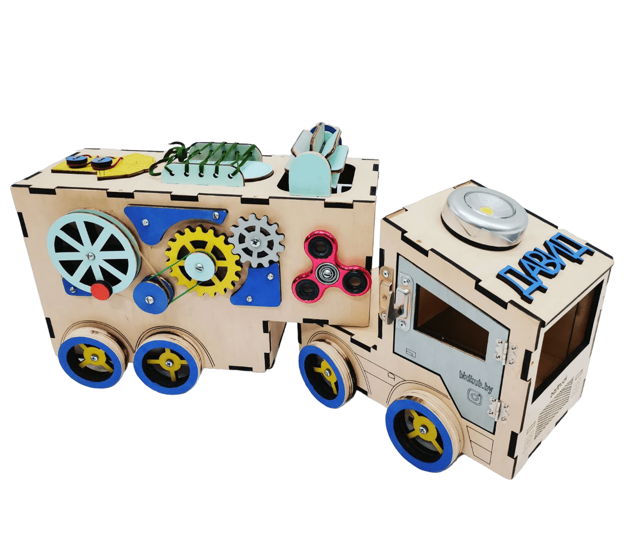 Бизитрак- это машинка с развивающими элементами. Можно как добавить так и убрать. Бизитрак ездит, светится, двери открываются, прицеп отсоединяется. Можно играть как с полноценной машинкой.